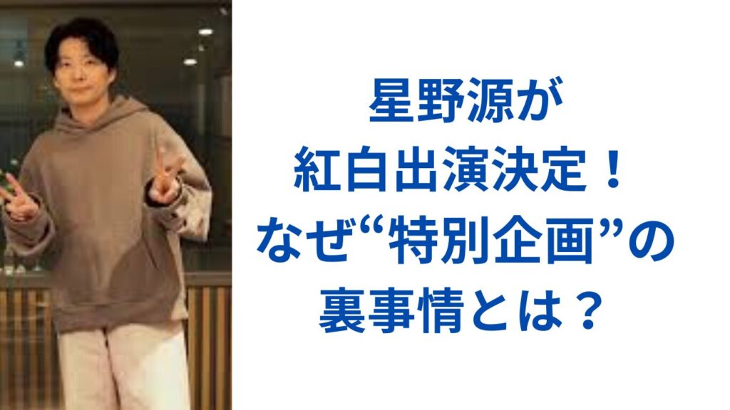 星野源さんの紅白歌合戦2025出演が正式に決定しました。 ただし今回は通常の出場枠ではなく、「特別企画」としての出演となり、その理由や背景に注目が集まっています。 本記事では、出演決定の事実関係とともに、なぜ“特別企画”なのかという裏事情をわか... -