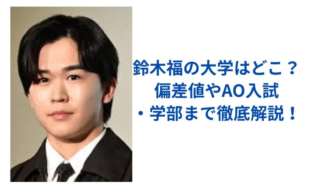 子役として『マルモのおきて』で一躍人気となった鈴木福さん。 この記事では、鈴木福さんの進学先や学部、偏差値、さらにAO入試についても詳しく解説していきます。 鈴木福の大学はどこ? 出典:ENCOUNT 鈴木福さんは、俳優業やタレント活動を続けながらも... -