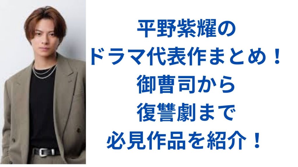 King & Princeとしてデビューし、今や俳優としても第一線で活躍する平野紫耀さん。 平野紫耀さんは、甘いルックスだけでなく、幅広い役柄をこなす演技力でも注目されています。 特に近年は、御曹司のような王子様的役から、復讐に燃える影のある役柄ま... -