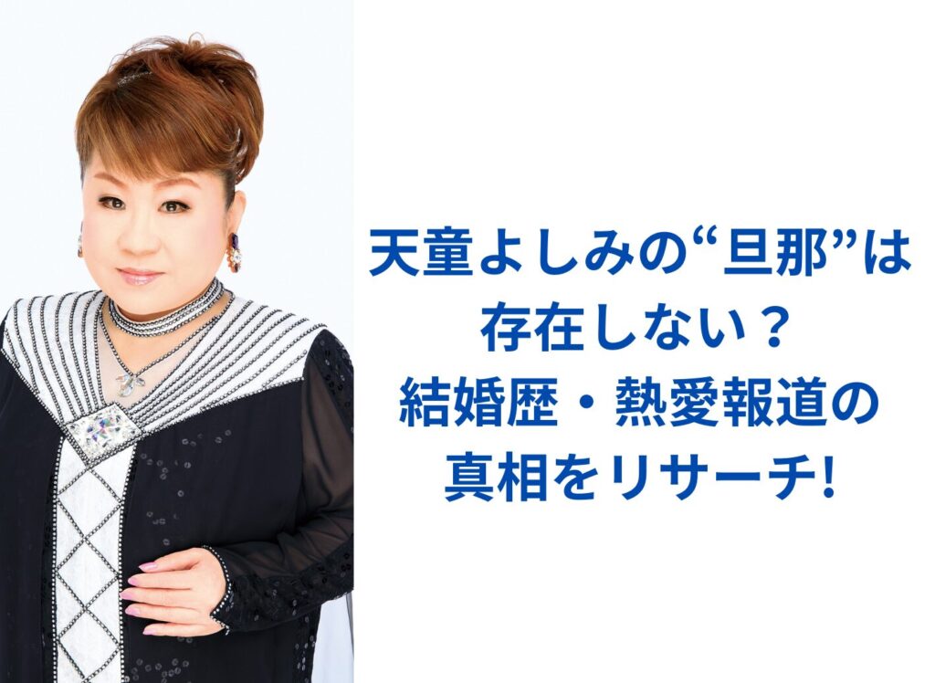演歌界の大御所・天童よしみさんについて「旦那はいるのか」「結婚歴は?」と検索する人が後を絶ちません。 公式発表を中心に、長年にわたる噂の出どころや週刊誌報道、本人の発言を洗い直しつつ、メディアがあまり触れない“裏事情”にも触れていきます。 ... -