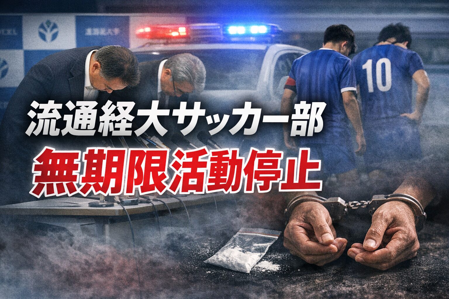 流通経済大学は、サッカー部の複数部員に違法薬物使用の疑いがあるとして、同部を無期限活動停止とし、大学として緊急会見を開きました。