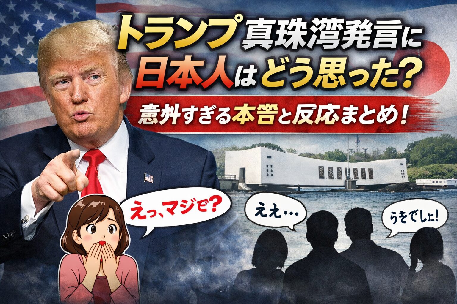 トランプ氏の「真珠湾」発言が注目を集める中、日本でもさまざまな反応が広がっています。