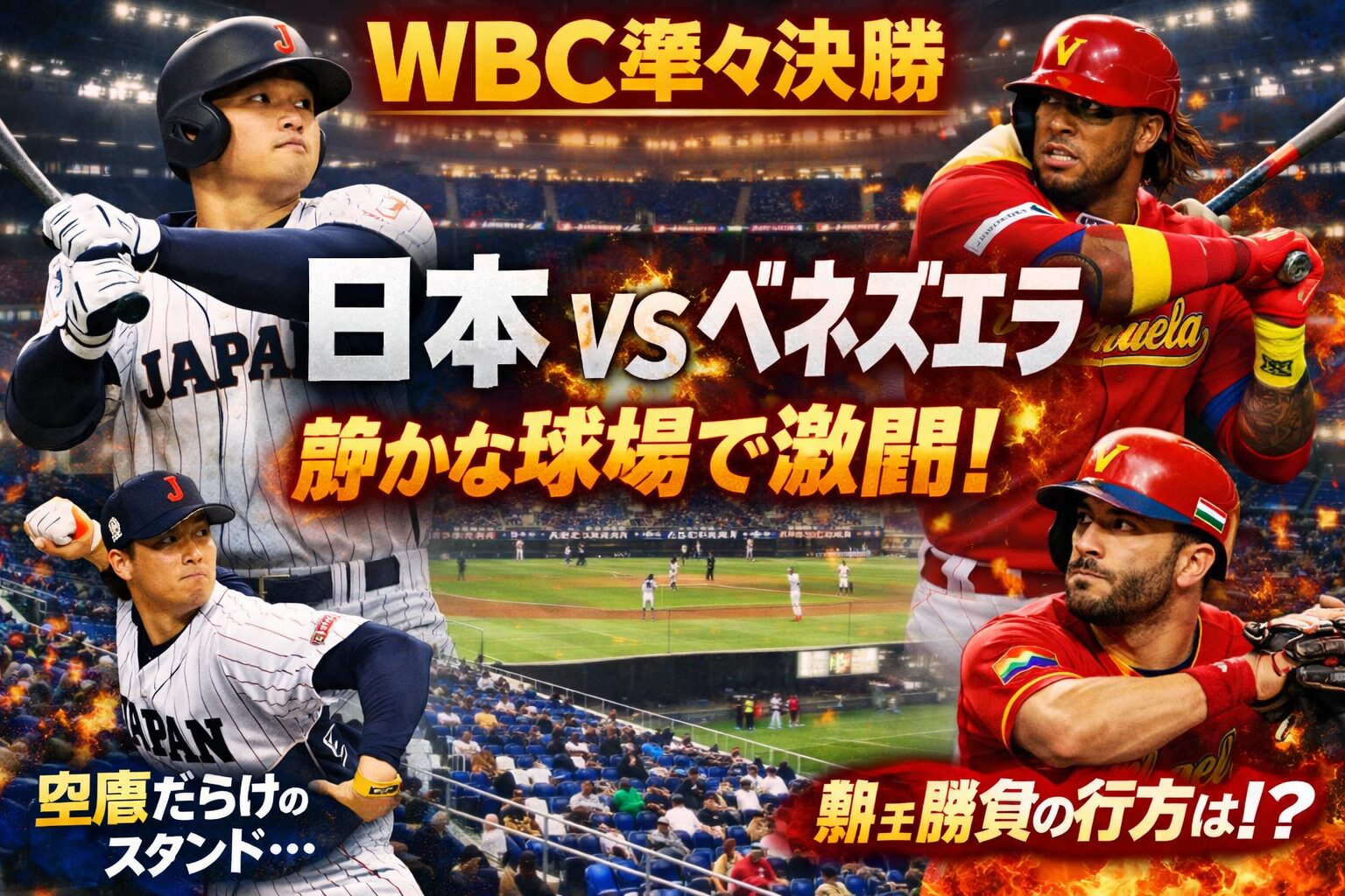 米・ローンデポ・パークで行われた準々決勝、侍ジャパンとベネズエラ代表の一戦。試合開始直前になってもスタンドには空席が目立ち、テレビ中継でもその様子が映し出されました。